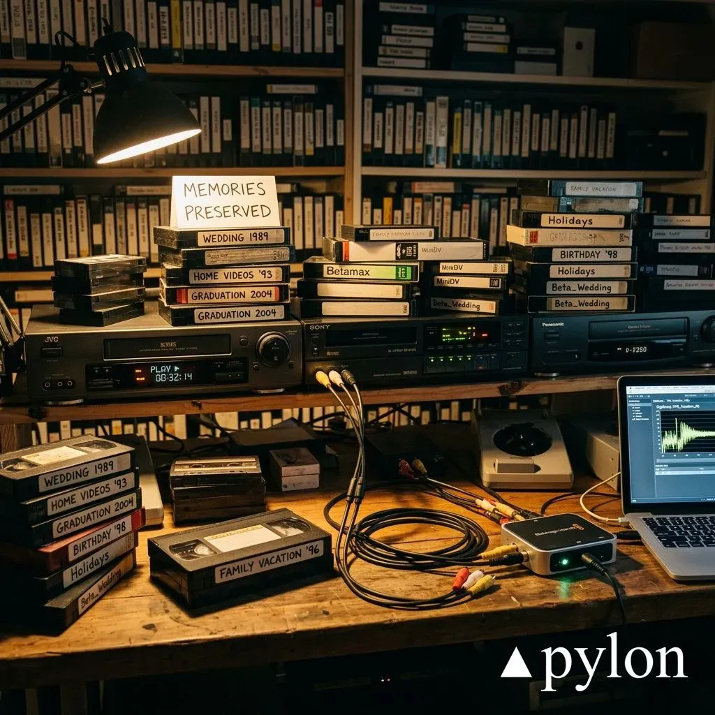 Pylon Tape Transfer Services specializes in preserving your history by expertly converting analog media into high-quality digital formats. Our professional digitization process ensures your vintage footage is protected, polished, and ready for modern viewing.